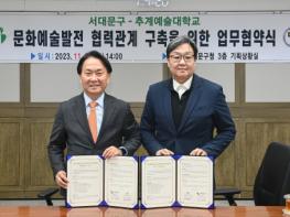 서대문구가 24일 오후 구청 기획상황실에서 추계예술대학교와 ‘지역 문화예술 발전 상호 협력 관계 구축’을 위한 업무협약을 맺었다.