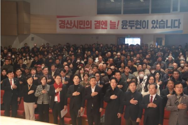 윤두현 국회의원의 지난 3년여간의 의정활동 성과를 경산시민에게 설명하는 이번 의정보고회는 국민의힘 윤주경 의원, 이인선 의원, 김영식 의원, 윤창현 의원, 김병욱 의원과 배한철 경북도의회의장, 박순득 경산시의회의장, 조현일 경산시장을 비롯한 각계각층의 경산시민 2천여 명이 참석해 성황리에 마무리됐다.