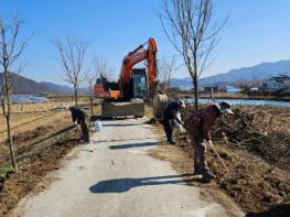 소이면은 이 구간 제방도로에 조성된 이팝나무 산책로를 지난 20일부터 5일간 금계국 씨앗을 파종하고 금계국의 건강한 생장을 위해 미리 잡풀을 제거하고 유기질 비료와 약품을 살포했다.