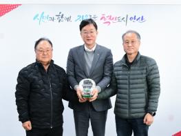 안산시는 지난 24일 안산시청에서 상록구 장하동 원후마을 주민들로부터 이민근 시장이 감사패를 수여받았다고 27일 밝혔다.
