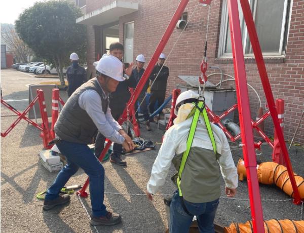 이날 훈련에는 밀폐공간 작업 근로자, 담당자, 팀장 및 용역 업체 등 22명이 참석했다.