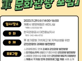 계룡시는 오는 29일 계룡병영체험관에서 한국관광공사 대전충남지사와 함께 ‘2023 지역상생 군문화관광포럼’을 개최한다고 밝혔다.