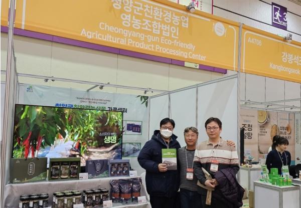 군은 운영 주체인 친환경농업영농조합법인(대표 오용재)과 함께 1층 친환경 A홀 부스에서 ‘푸드플랜 1번지’ 청양 안전 먹거리의 인지도를 높이면서 최신식 인증시설이 생산한 유기농?무농약 고춧가루와 무농약 표고버섯 가공품의 우수성을 구매자들에게 적극 알려 친환경 농가의 소득 창출을 도왔다.
