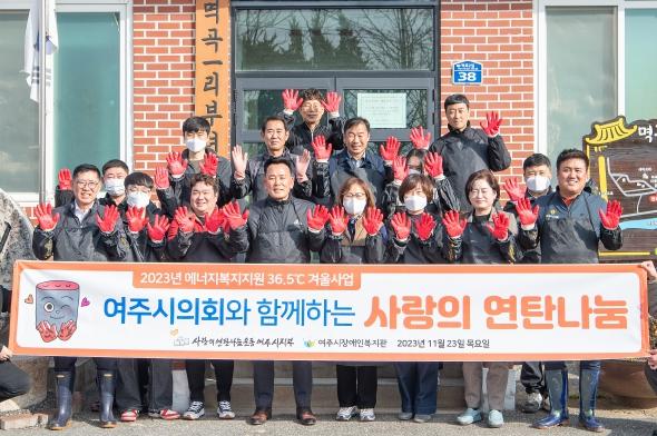 여주시의회는 매년 여주시장애인복지관 ‘사랑의 연탄나눔 운동 여주시지부’와 함께 겨울철 난방에 어려움을 겪는 에너지 빈곤층이 1년 365일 36.5도를 유지할 수 있도록 연탄을 후원하고 배달 봉사를 해오고 있으며, 올해도 연탄 1,200장을 지역 내 소외계층에 전달하여 이웃나눔을 실천했다.