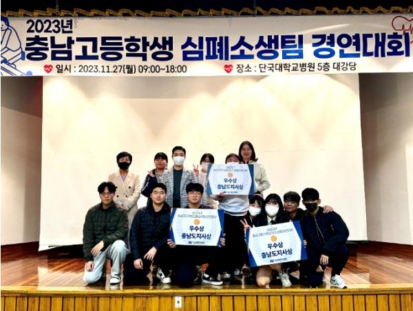 총 12개팀이 참여한 이번 대회는 도내 고등학생들에게 응급의료의 중요성을 인식시키고 심폐소생술 교육 기회를 제공하고자 도 주최·단국대병원 주관으로 도교육청과 협력해 마련했다.