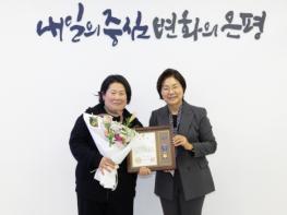 김미경 구청장은 간담회에서 김 씨를 만나 당시의 이야기를 직접 듣고, 도움이 필요한 이웃을 지나치지 않고 내 부모와 같이 보살핀 데에 대한 고마움의 마음을 담아 감사패를 전달했다.