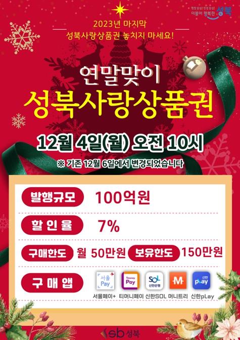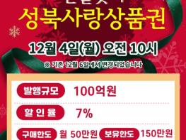 서울 성북구가 12월 4일 오전 10시부터 100억 원 규모의 ‘성북사랑상품권’을 발행한다.