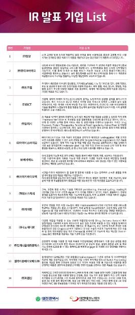 대전시는 앞으로도 지역 기업들이 투자유치를 확대하고 사업을 성장시킬 수 있도록 관련 홍보 발표(IR) 행사를 지속 지원할 계획이다.