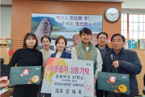 산청군 생비량면은 지리산새희망상황버섯 대표 강태욱씨가 상황버섯 진액(216만원 상당)을 기탁했다고 28일 밝혔다.