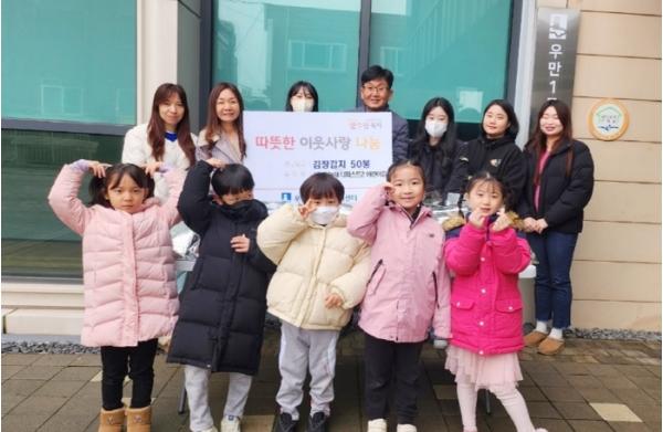 이에 우만1동 박근섭 동장은 “이렇게 추운 겨울 따뜻한 지역사회를 위해 우만1동에 김장김치를 후원해 주셔서 감사하다. 또 고사리같은 손으로 김장을 담갔을 어린이들에게도 고마움을 전하며, 어려운 이웃을 돕는 소중한 경험을 했을 것으로 생각된다. 이 따뜻한 마음들이 잘 전달될 수 있도록 하겠다”고 전했다.