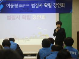 이동령 증평군의회 의장이 지난 27일 증평군새마을회관 회의실에서 바르게살기운동증평군협의회 회원들을 대상으로 법질서 확립 특강을 실시했다.