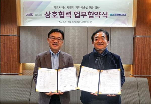 (재)김해문화재단과 에스플란트치과가 지난 27일 김해문화의전당에서 업무협약을 체결했다.
