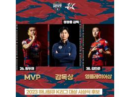 MVP 원두재, 영플레이어상 김민준을 비롯해 감독상에는 정정용 감독이 노미네이트됐다. BEST11에도 GK 신송훈, DF 박민규-김재우-이상민, MF 김진규-원두재, FW 강현묵이 이름을 올렸다. 김천은 개인상과 베스트11 GK, MF, FW 부문에서 모두 이름을 올리며 K리그2 우승팀 면모를 뽐냈다.