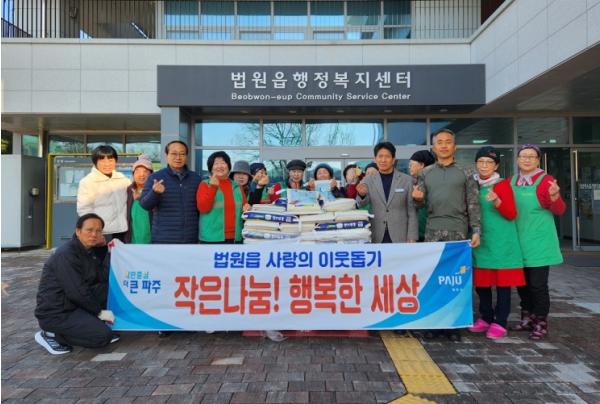파주시 법원읍은 28일 법원읍 새마을부녀회로부터 쌀(10kg) 100포를 기부받았다고 밝혔다.