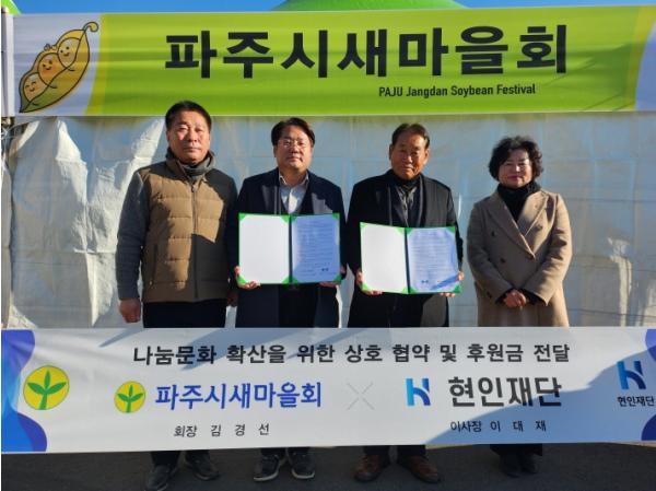 파주시새마을회는 25일 파주시의 사회복지 및 나눔문화 확산을 위해 임진각에서 현인재단과 업무협약을 체결했다.