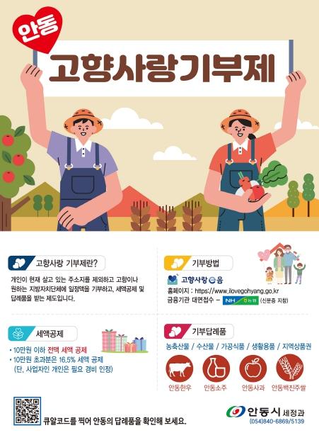 안동시가 2024년 고향사랑 기부자에게 제공할 답례품과 공급업체를 모집한다.