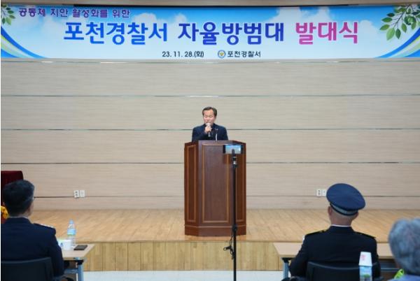 포천시의회 서과석 의장이 지난 28일 포천경찰서 어울마당에서 진행되는 ‘포천경찰서 자율방범대 발대식’에 참석했다.
