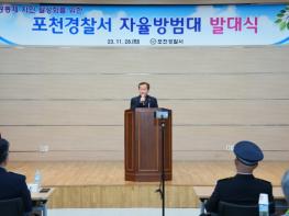 자율방범대 활동을 지속적으로 지원하고 대원의 자긍심과 소속감 고취를 통해 지역안전에 대한 기여도를 높이기 위해 준비된 이번 발대식에는 포천경찰을 비롯한 자율방범대와 내빈이 참석해 경과보고, 자율방범대 대표 위촉장 수여, 격려사 및 축사, 기념촬영 등을 진행했다.