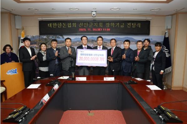 대한한돈협회 신안군지회 회원들은 지난 11월 28일 신안군청을 방문하여 인재 육성을 위해 써 달라며 신안군장학재단에 2천만 원을 기탁했다.