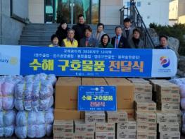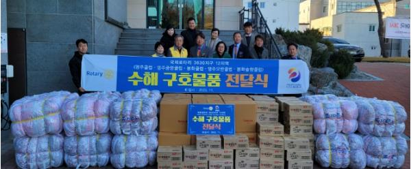 이날 기증된 물품은 지역의 수해 피해민들을 위해 조금이나마 보탬이 됐으면 하는 마음으로 국제로타리 3630지구(총재 정두관) 2023-24년도 재해대응 보조금으로 국제로타리 회원들이 뜻을 모아 준비했다.