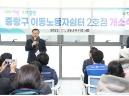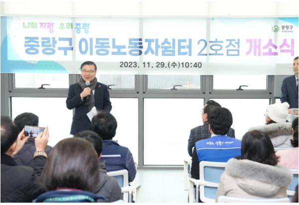 29일 쉼터 개소를 축하하기 위해 마련된 개소식에는 류경기 중랑구청장을 비롯해 이동노동자 관련 대표자 등 30여 명이 참석했다. 개소식은 기념사와 축사, 제막식 등으로 진행됐다.