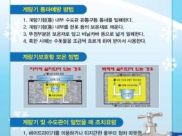더불어 군민들에게 적극적인 동파 예방 요령 홍보 및 상수관로·계량기 동파 사고에 대비해 수도시설 전반에 대한 사전점검을 실시한다.