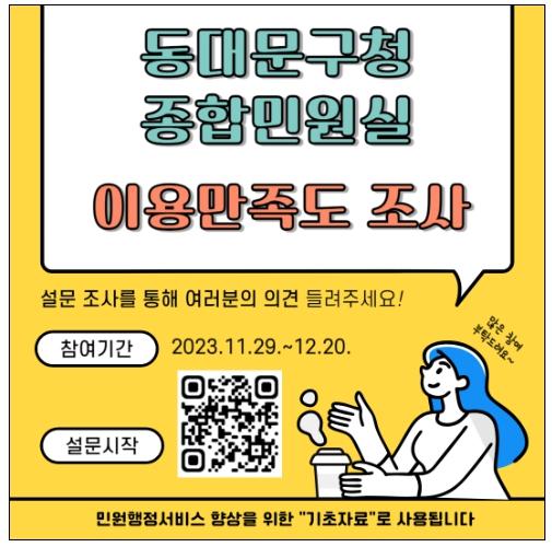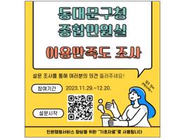 동대문구는 오는 12월 20일까지 ‘2023년 종합민원실 이용만족도 설문조사’를 실시한다.