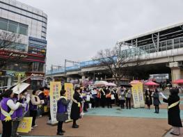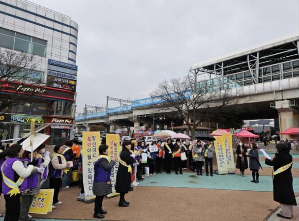 아산시가 지난 29일 온양온천역 일원에서 여성 폭력 추방 주간을 맞아 합동 캠페인을 펼쳤다.