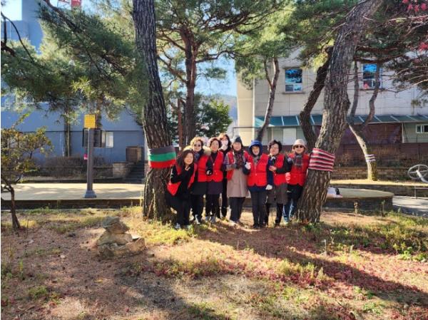 태백시여성단체협의회는 지난 28일 여성?가족친화공원으로 조성 중인 솔바람공원에서 월동에 대비해 공원에 식재된 나무에 손수 만든 뜨개옷을 입혀 새롭게 단장하는 환경정비를 실시했다.