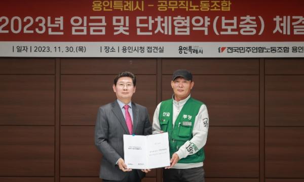 용인특례시는 시 소속 공무직 근로자를 대표하는 전국민주연합노동조합 용인지부와 ‘2023년 임금 및 보충협약’을 맺었다고 1일 밝혔다.