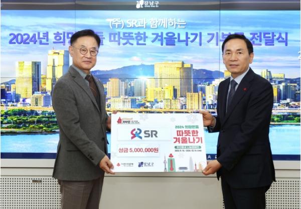 꿈이 모이는 도시, 미래를 그리는 강남구가 30일 구청에서 ㈜SR가 함께하는 희망온돌 따뜻한 겨울나기 기부금 전달식을 개최했다.