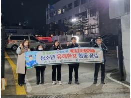 이날 합동점검단은 학교 주변, 번화가 등 밀집 지역을 중심으로 △청소년 출입·고용금지 위반 행위 단속 △술·담배 등 청소년유해약물 판매 및 불건전 전단지 등 배포 행위 점검·단속 △청소년 이성혼숙 등 묵인·방조 행위 △음주·흡연·폭력·가출 등 위험에 노출된 청소년 보호활동 △술·담배, 기타약물·물건 등에 부착하는 유해 표시의 적정성 등을 집중적으로 점검했다.