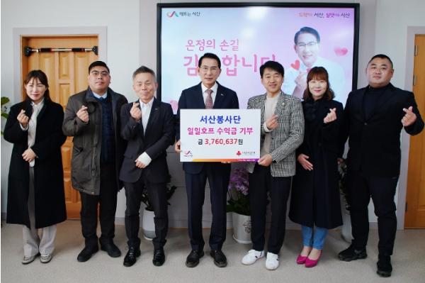 충남 서산시는 지난 30일 서산봉사단에서 이웃돕기 성금 3,760,637원을 시에 기탁했다고 밝혔다.