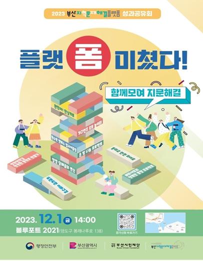 부산시는 1일 오후 2시 ‘블루포트 2021’ 1층 창의공간에서 '2023년 부산지역문제해결플랫폼 성과공유회'를 개최하고 올해 사업을 마무리한다고 밝혔다.