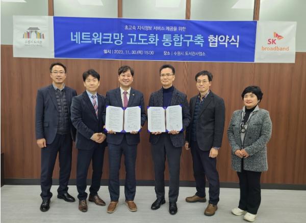 수원시도서관사업소와 SK브로드밴드는 11월 30일 선경도서관에서 ‘네트워크 고도화 통합구축 협약’을 체결하고, 수원시도서관에 초고속 지식정보 서비스를 구축하는 데 협력하기로 했다.