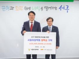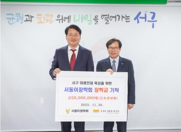 인천시 서구는 호반장학재단에서 30일 지역 인재육성을 위한 장학금 5,000만원을 (재)서동이장학회에 기탁했다고 밝혔다.
