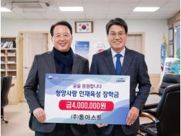㈜동아스트가 11월 30일 청양군청을 방문해 청양사랑인재육성장학회에 장학금 400만 원을 전달했다.