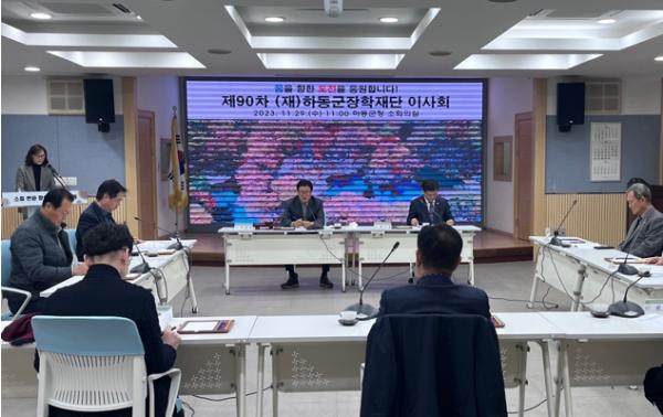 (재)하동군장학재단은 지난달 29일 군청 소회의실에서 이양호 이사장과 최수경 교육장 등 이사 9명이 참석한 가운데 올해 마지막인 제90차 이사회를 개최했다고 1일 밝혔다.