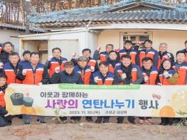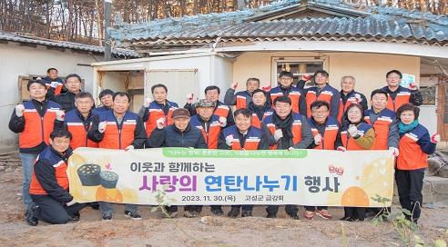 고성군 기관?단체장 모임인 금강회는 지난 30일, 어려운 이웃과 함께 따뜻한 연말을 맞이하기 위해 저소득 이웃 5가구에 연탄 1,500장을 전달하는 ‘사랑의 연탄 나누기’ 봉사활동을 했다.