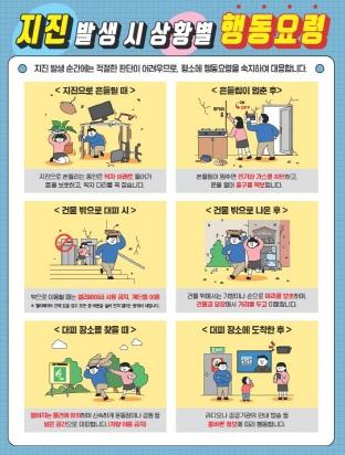 시는 지난달 30일 발생한 경주지진으로 시민들의 우려가 높아지자 ‘지진 발생 시 상황별 행동요령 포스터’와 ‘미리 대비하고 알아두는 지진 이야기’ 책자를 전 부서와 구청 및 읍면동에 긴급배포했다.