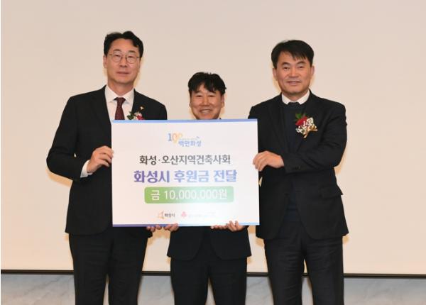 화성오산지역건축사회가 화성시에 관내 취약계층 지원을 위한 후원금 1,000만원을 1일 푸르미르 호텔에서 전달했다.