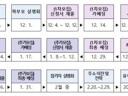 2024학년도 1학기 농촌유학을 희망하는 학생(학부모)는 12월 11일 12시까지 재학중인 학교로 신청서를 제출하면 된다. 12월 14일 전남/전북/강원 교육청 홈페이지에서 가배정 결과를 확인하여, 사전 방문(12.15. ~ 12. 21.) 후 최종 신청서 제출(12.22.~12.26.) 절차를 거쳐 12월 29일 대상자가 최종 확정된다.