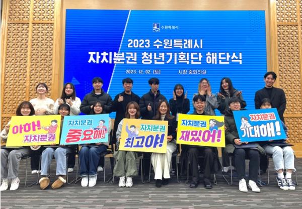 ‘2023년 수원특례시 자치분권 청년기획단’이 활동을 마무리하고, 2일 시청 중회의실에서 해단식을 열었다.