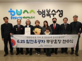 대구 수성구는 지난 30일 6·25전쟁에 참전해 공을 세운 故 복기선 상병 유가족에게 화랑무공훈장과 증서를 전수했다.