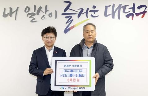 최충규 대덕구청장은 “지역사회를 위한 나눔 실천에 앞장서 주셔서 감사드린다”라며 “기탁해 주신 상품권은 꼭 필요한 곳에 고마운 마음과 함께 잘 전달하도록 하겠다”고 답했다.