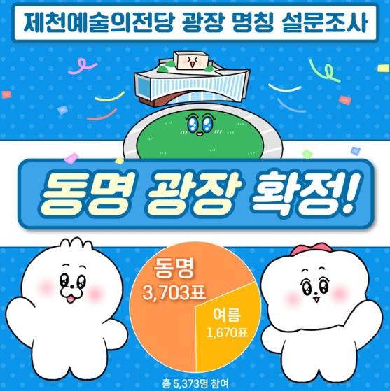 시는 동명과 여름 2개의 명칭 대상으로 지난 11월 1일부터 11월 30일까지 온라인으로 진행된 설문조사에서 총 5,373명의 시민이 참여했으며 이 중 3,703명이 동명광장 명칭에 투표해 최종 확정됐다.