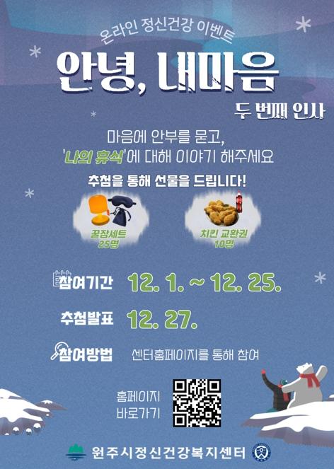 원주시정신건강복지센터는 온라인 정신건강 이벤트 '안녕, 내마음: 두 번째 인사'를 진행한다.