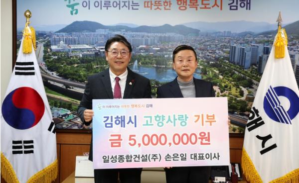 김해시는 일성종합건설(주) 손은일 대표가 고향사랑기부금 500만원을 기탁했다고 4일 밝혔다.