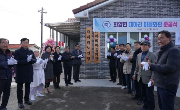 앞서, 군은 화양면 대하길 128 일원에 연면적 151㎡의 규모의 총사업비 3억 6천만 원을 투입해 지난 5월 착공을 거쳐 10월에 대하리 마을회관을 준공했다.