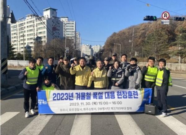 파주시는 11월 30일 파주경찰서, 파주소방서, 9사단 등과 함께 ‘2023년 대설 대응 현장훈련’을 실시했다.